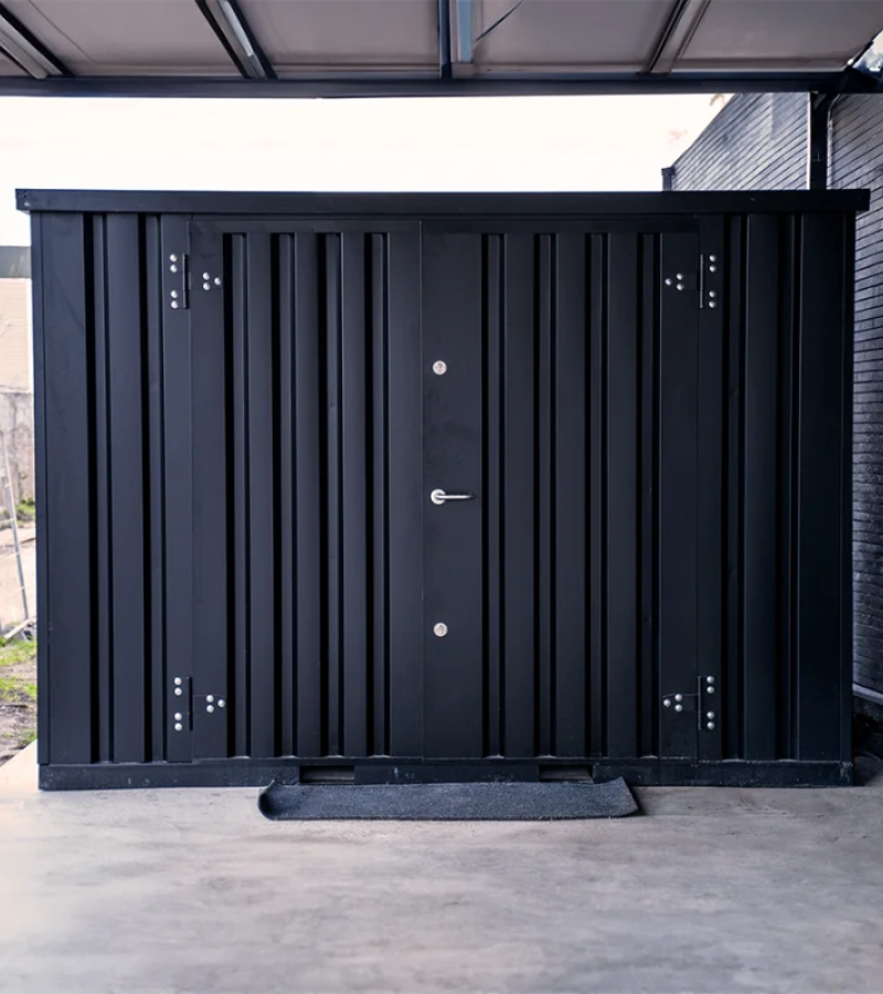 Équipé d’une double porte de 175 cm sur son côté de 3 mètres, il permet un accès facile à vos biens. Son système de fermeture comprend une double serrure à 3 points et un vissage intérieur, garantissant une protection anti-effraction optimale. Pour renforcer encore plus la sécurité, nous proposons en option une barre anti-infraction, une rampe d’accès ainsi que des étagères de 1 ou 2 mètres.